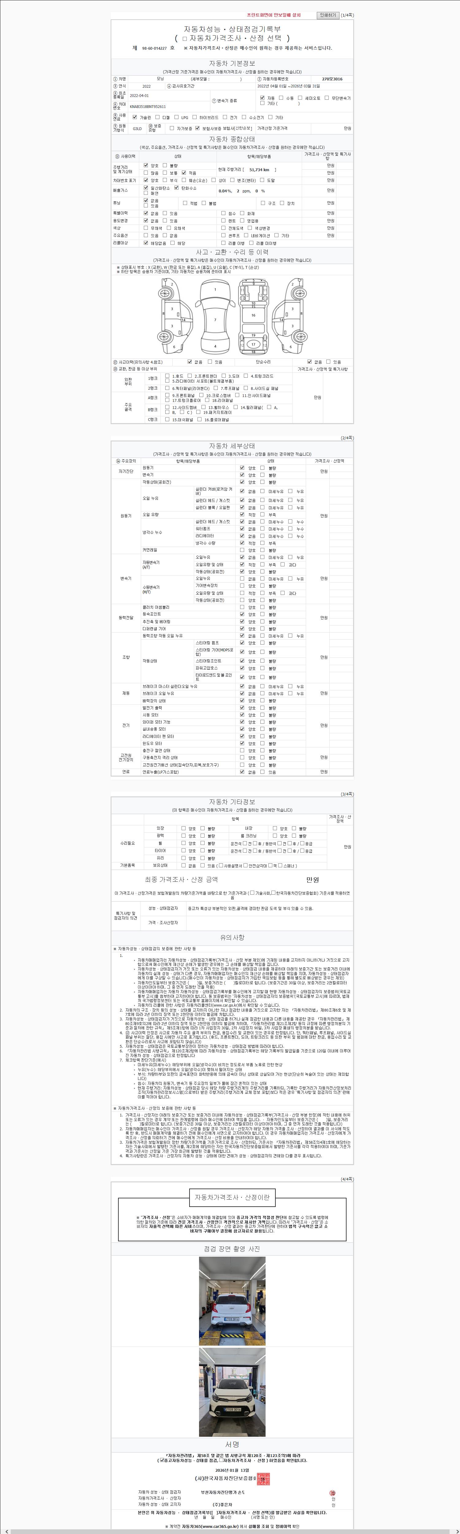 사고유무 성능기록부 참조 제시번호 제 2026007275 호