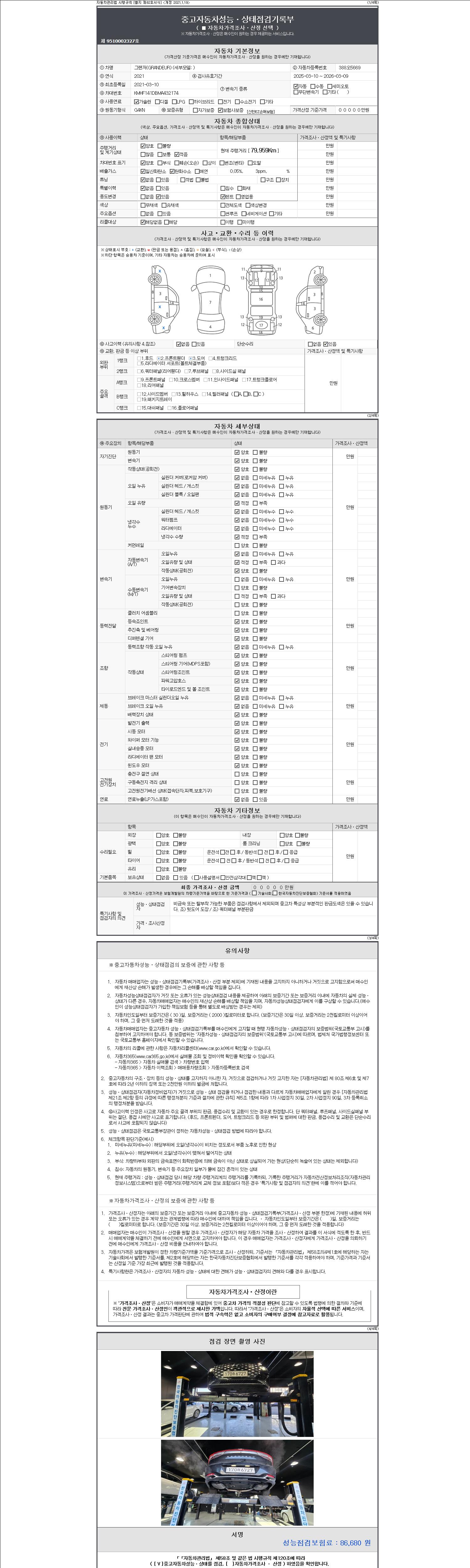 -중고자동차 매매업자를 통해 차량을 구입하실 경우 반드시 "중고자동차 성능, 상태점검 기록부"를 교뷰 받으셔야 하며, 매매업자는 반드시 의무 교부 하여야 압니다.