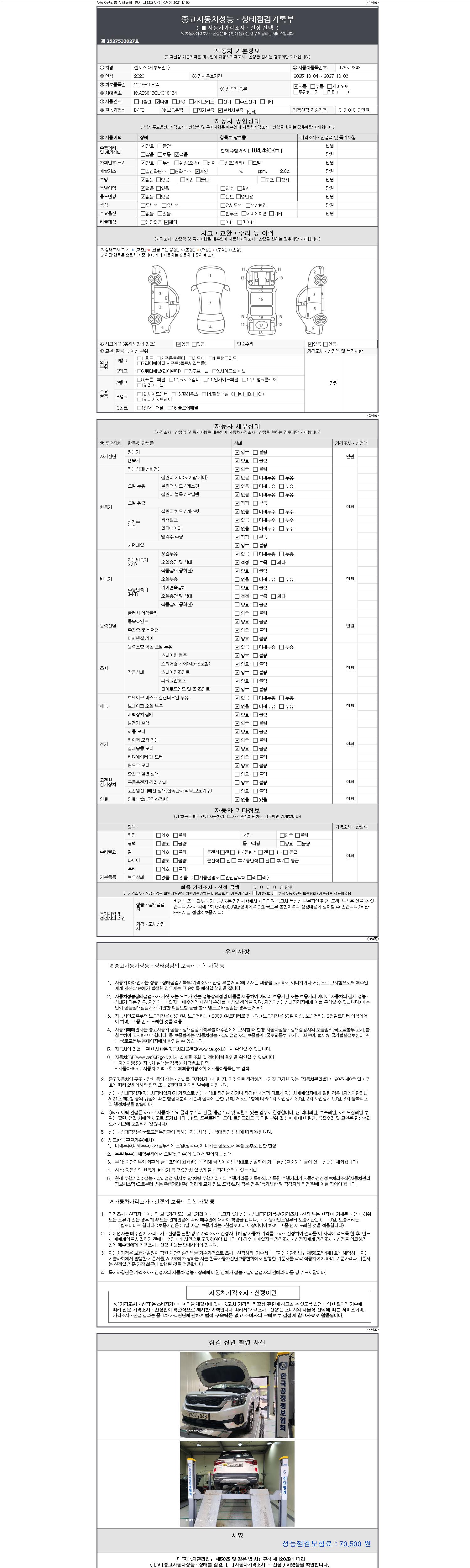 2. 차량 등록증이나 성능점검지 등을 상담자에게 요청및 확인하시고 사전에 미리 점검 하시기를 권유드립니다.