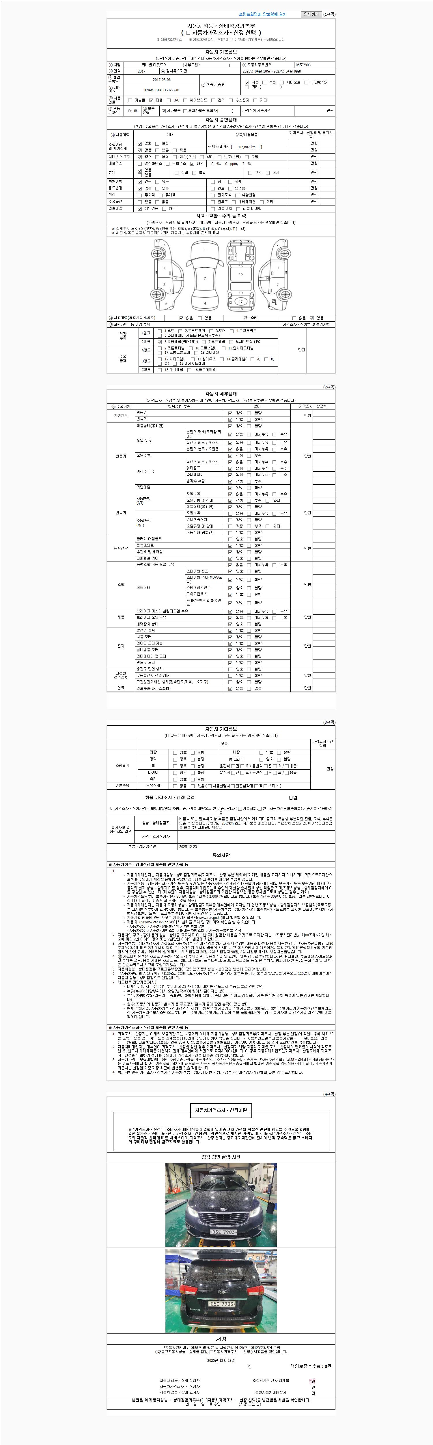 사고유무 성능기록부 참조 제시번호 제 2025070694 호