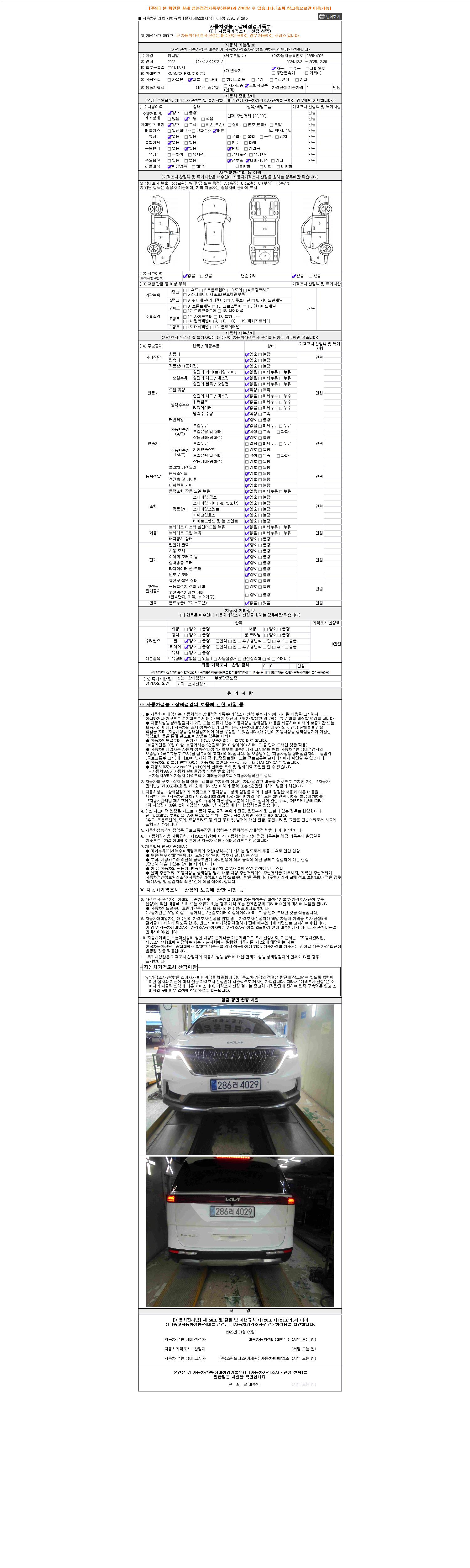 사고유무 성능기록부 참조 제시번호 제 2026002289 호