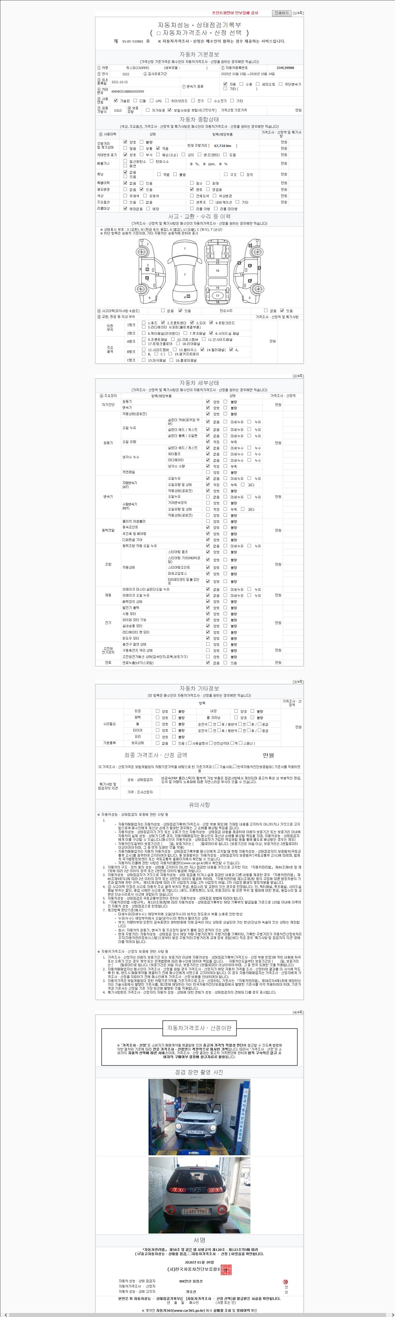 2. 차량 등록증이나 성능점검지 등을 상담자에게 요청및 확인하시고 사전에 미리 점검 하시기를 권유드립니다.