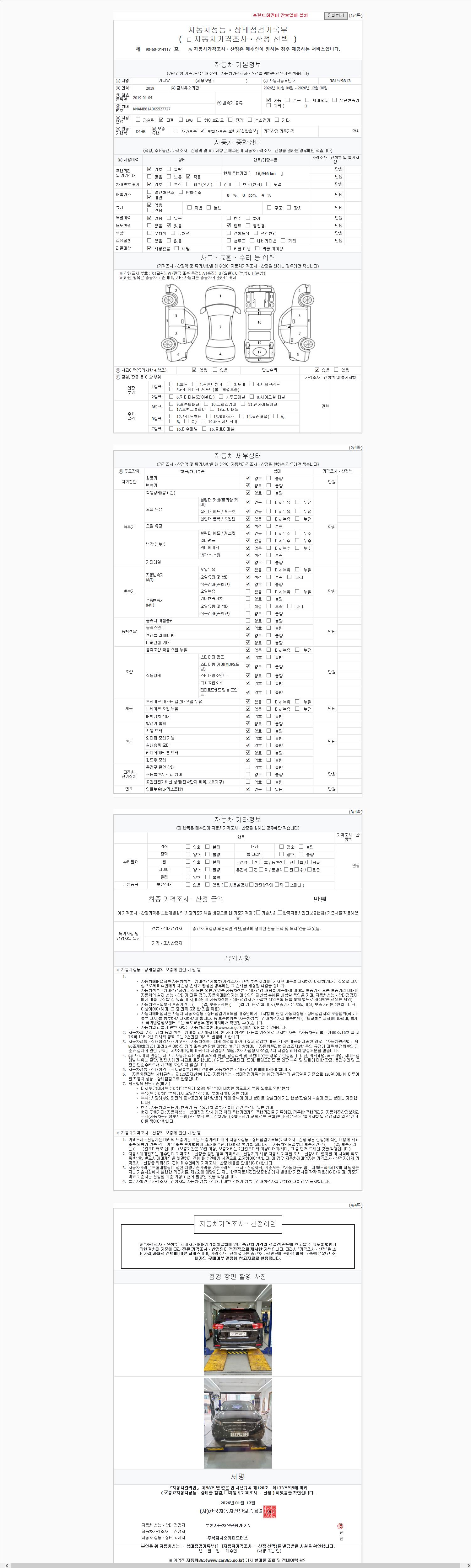 사고유무 성능기록부 참조 제시번호 제 2026004735 호