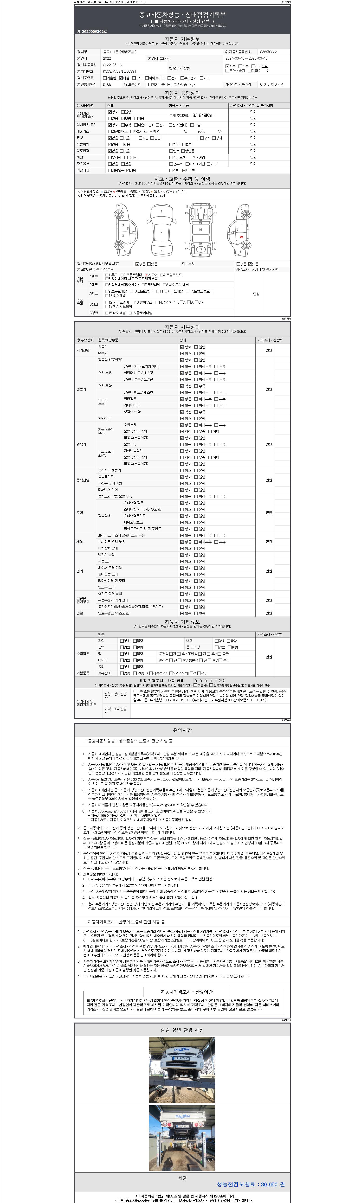 2. 차량 등록증이나 성능점검지 등을 상담자에게 요청및 확인하시고 사전에 미리 점검 하시기를 권유드립니다.