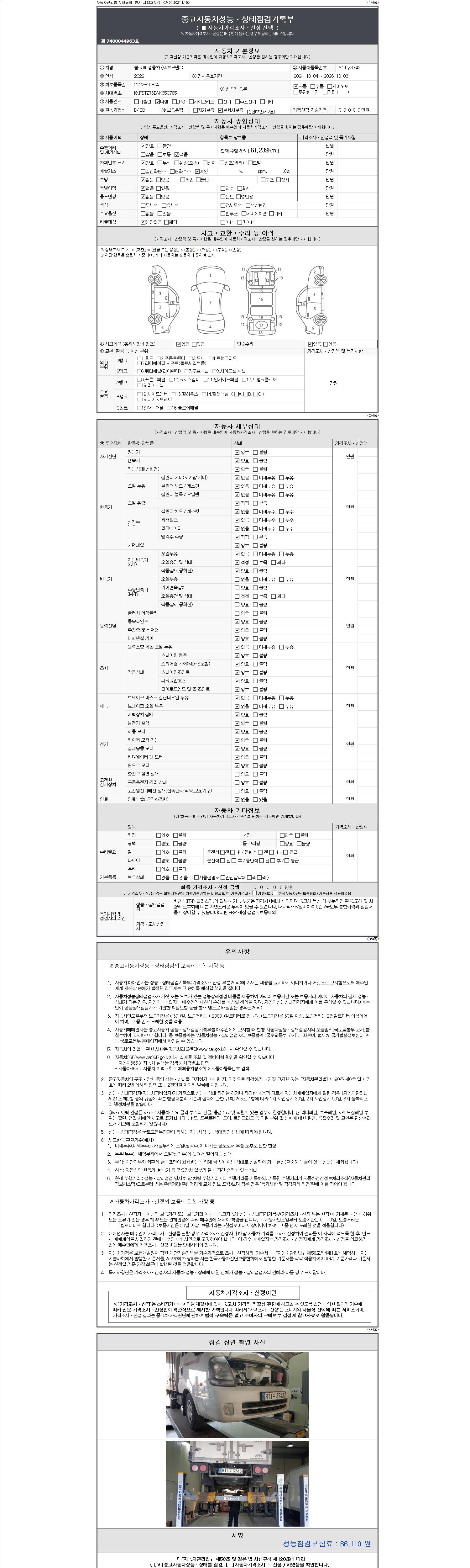2. 차량 등록증이나 성능점검지 등을 상담자에게 요청및 확인하시고 사전에 미리 점검 하시기를 권유드립니다.