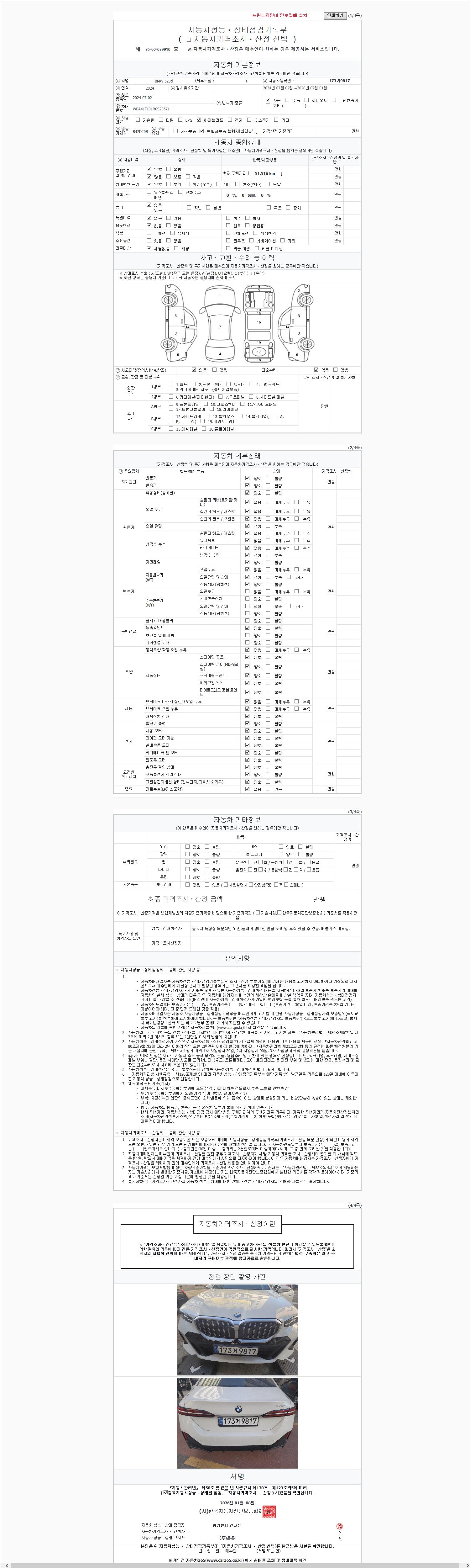 | 주행거리 | 51,175 km | 차량번호 | 173거9817 |