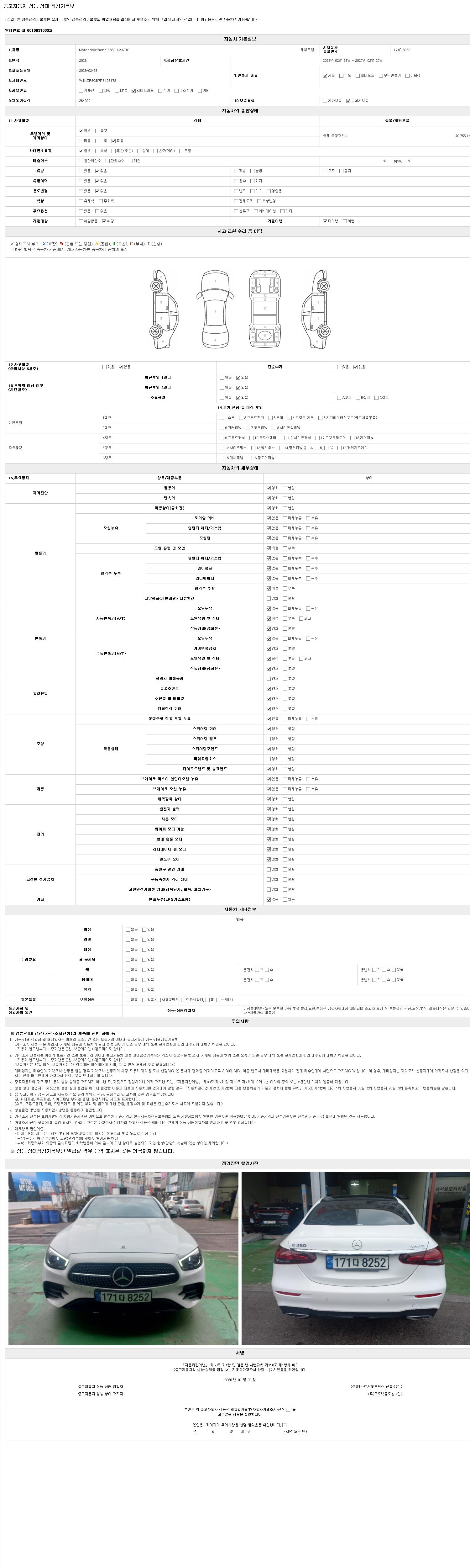 2. 차량 등록증이나 성능점검지 등을 상담자에게 요청및 확인하시고 사전에 미리 점검 하시기를 권유드립니다.