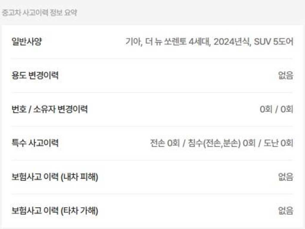 | 사고유무 | ----- | 무사고 |