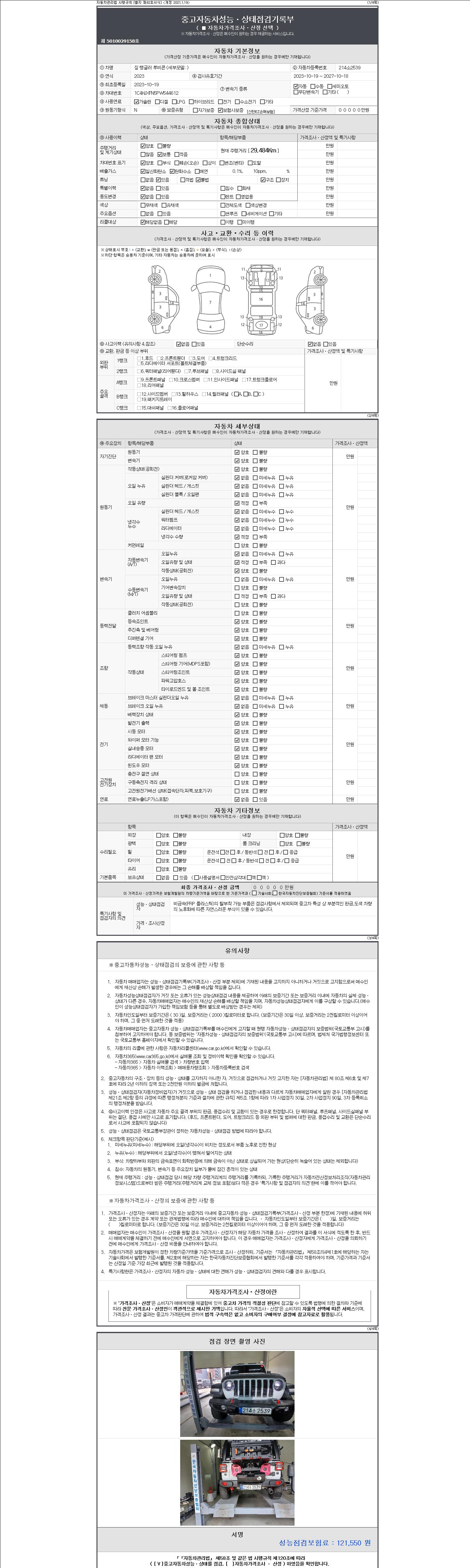 | 주행거리 | 29,466 km | 차량번호 | 214소2539 | 사고유무 | 성능기록부 참조 | 제시번호 | 제 2147483647 호 |