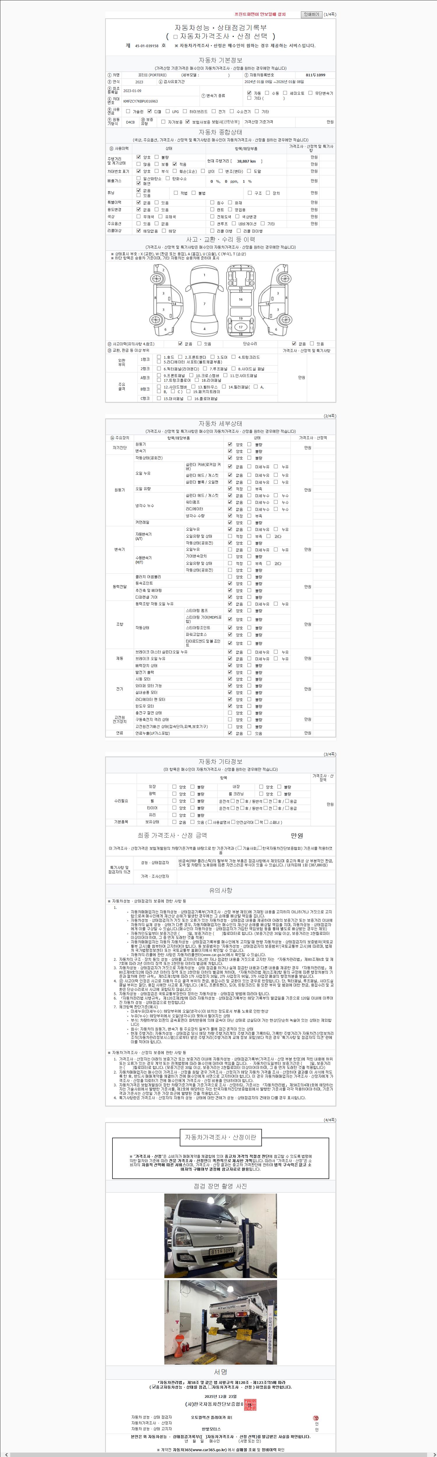 - 사고유무 : 성능기록부 참조