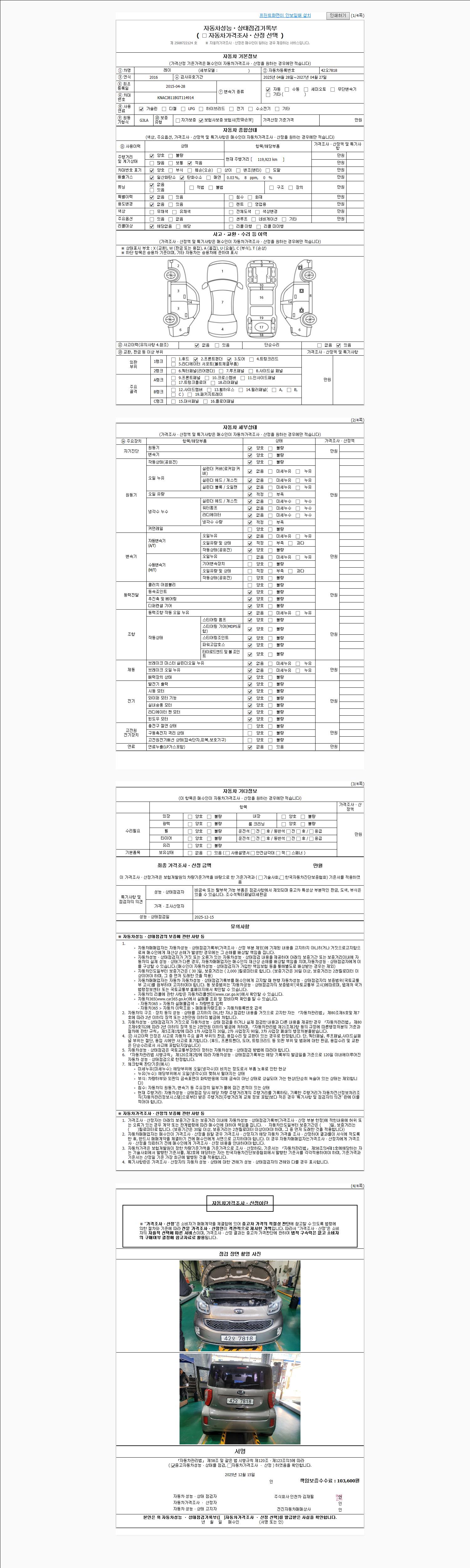 -중고자동차 매매업자를 통해 차량을 구입하실 경우 반드시 "중고자동차 성능, 상태점검 기록부"를 교뷰 받으셔야 하며, 매매업자는 반드시 의무 교부 하여야 압니다.
