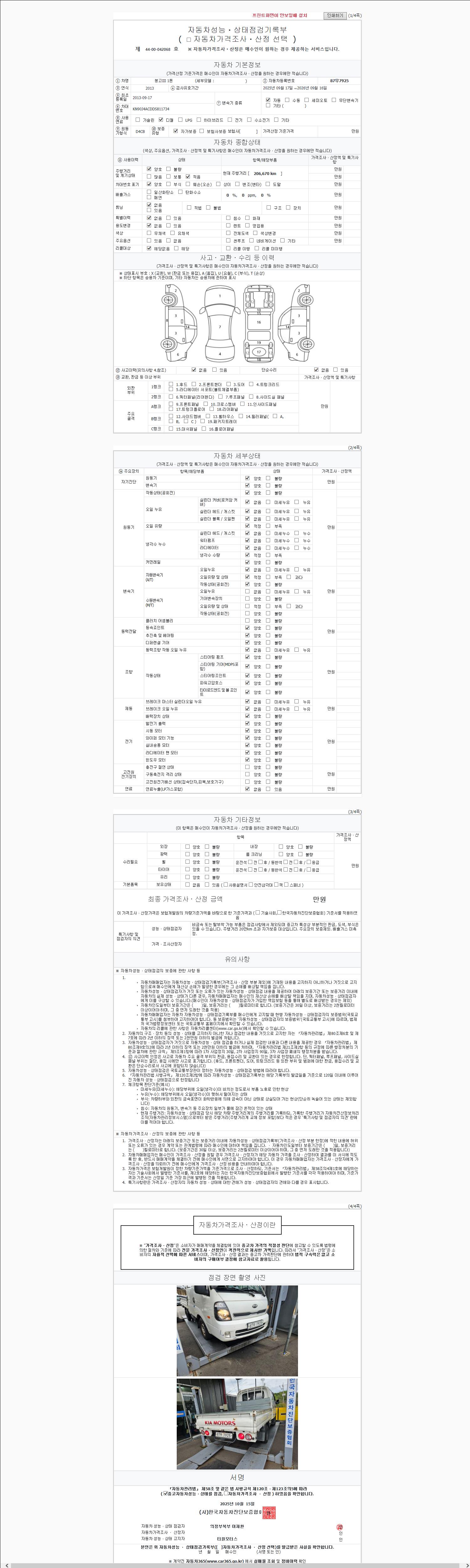 사고유무 성능기록부 참조 제시번호 제 2025189815 호