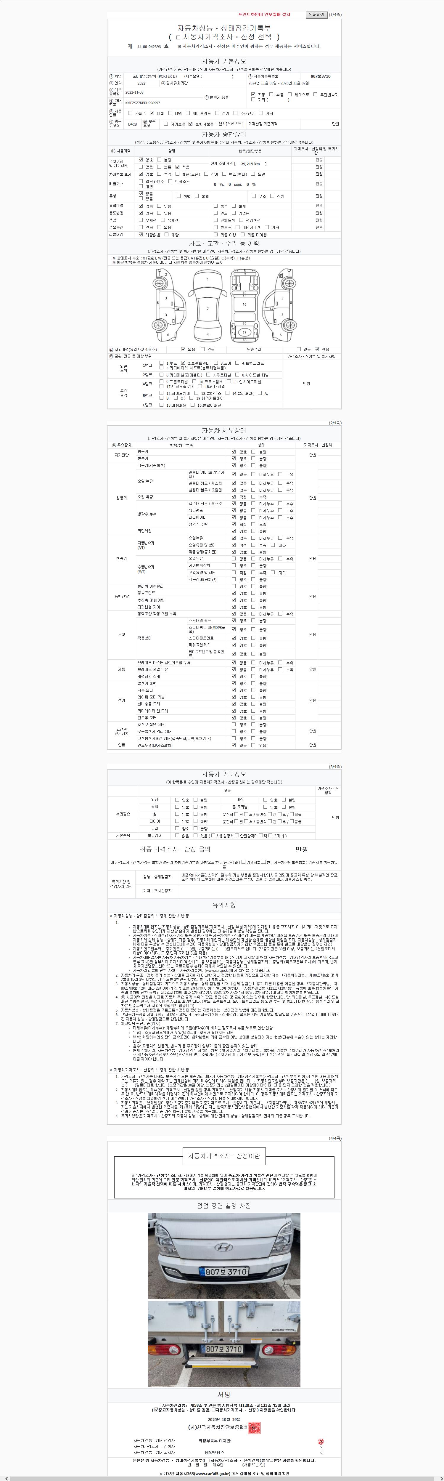 | 주행거리 | 29,215 km | 차량번호 | 807보3710 |
