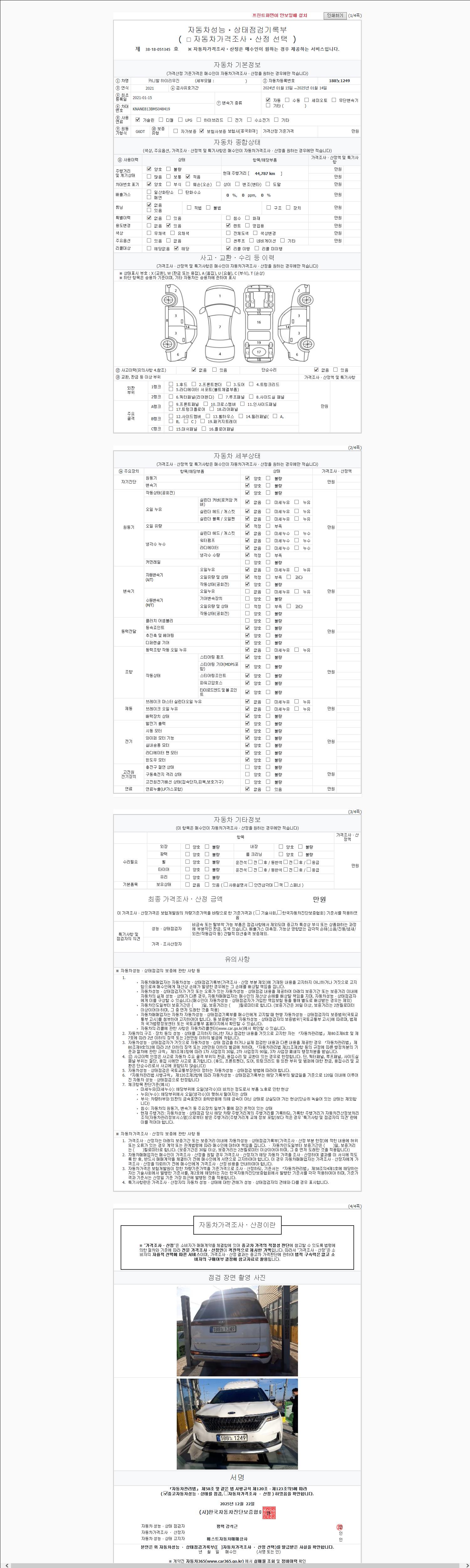 사고유무 성능기록부 참조 제시번호 제 2147483647 호