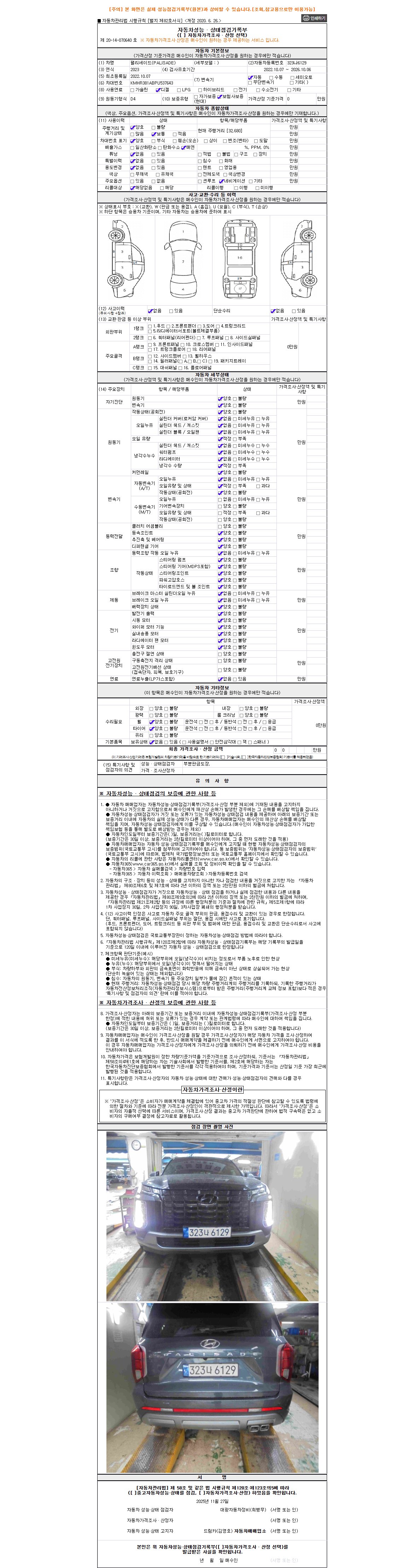 -중고자동차 매매업자를 통해 차량을 구입하실 경우 반드시 "중고자동차 성능, 상태점검 기록부"를 교뷰 받으셔야 하며, 매매업자는 반드시 의무 교부 하여야 압니다.