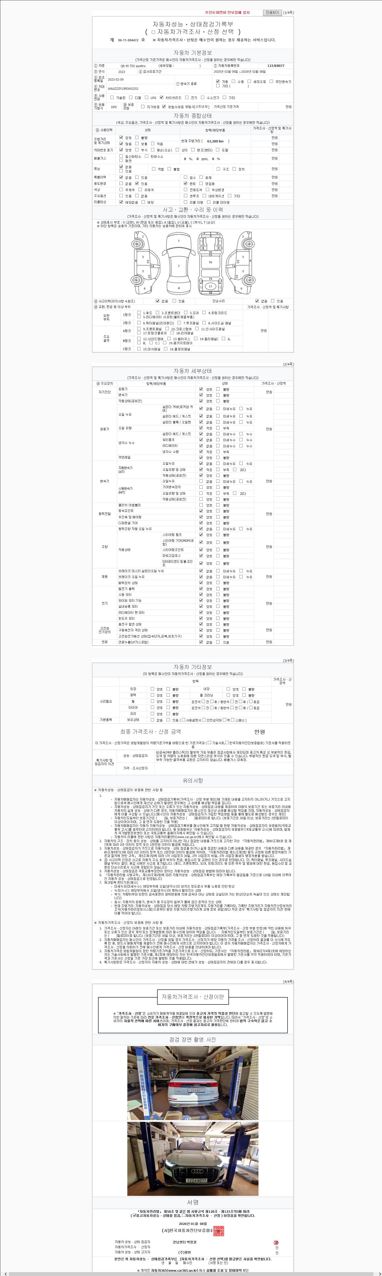 - 2. 차량 등록증이나 성능점검지 등을 상담자에게 요청및 확인하시고 사전에 미리 점검 하시기를 권유드립니다.
