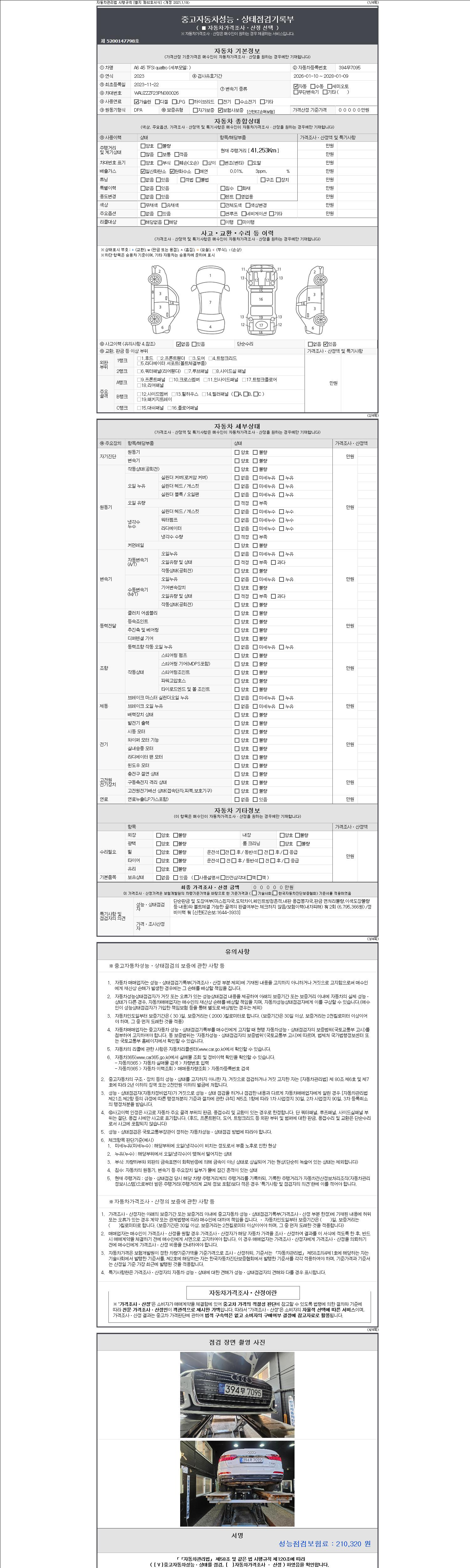 | 주행거리 | 41,253 km | 차량번호 | 394무7095 | 사고유무 | 성능기록부 참조 | 제시번호 | 제 2147483647 호 |