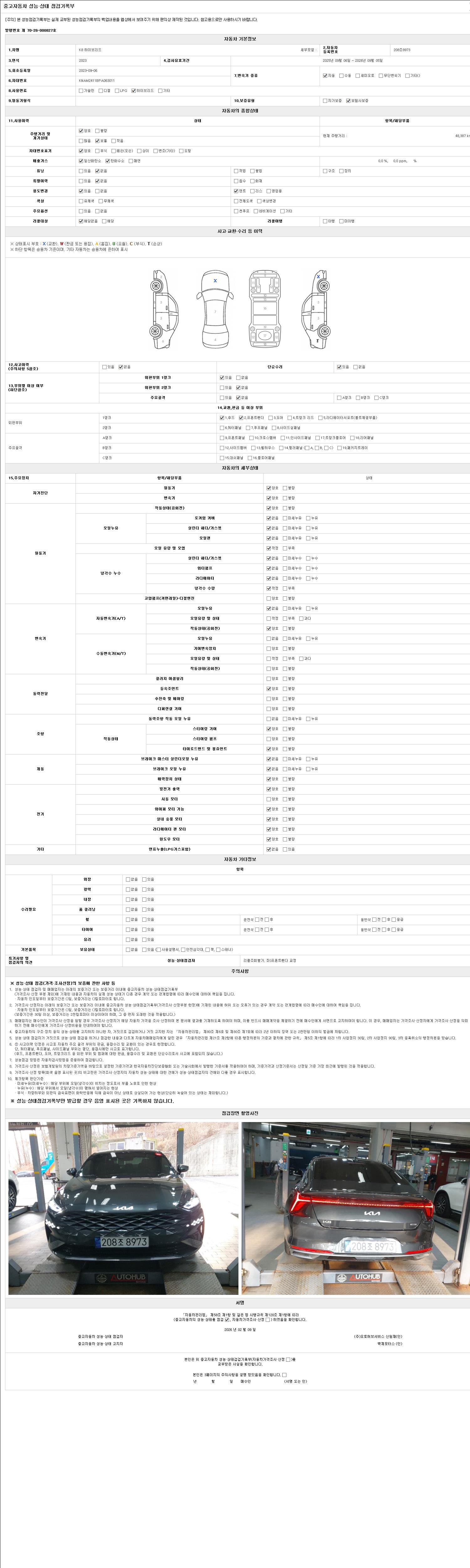- 2. 차량 등록증이나 성능점검지 등을 상담자에게 요청및 확인하시고 사전에 미리 점검 하시기를 권유드립니다.