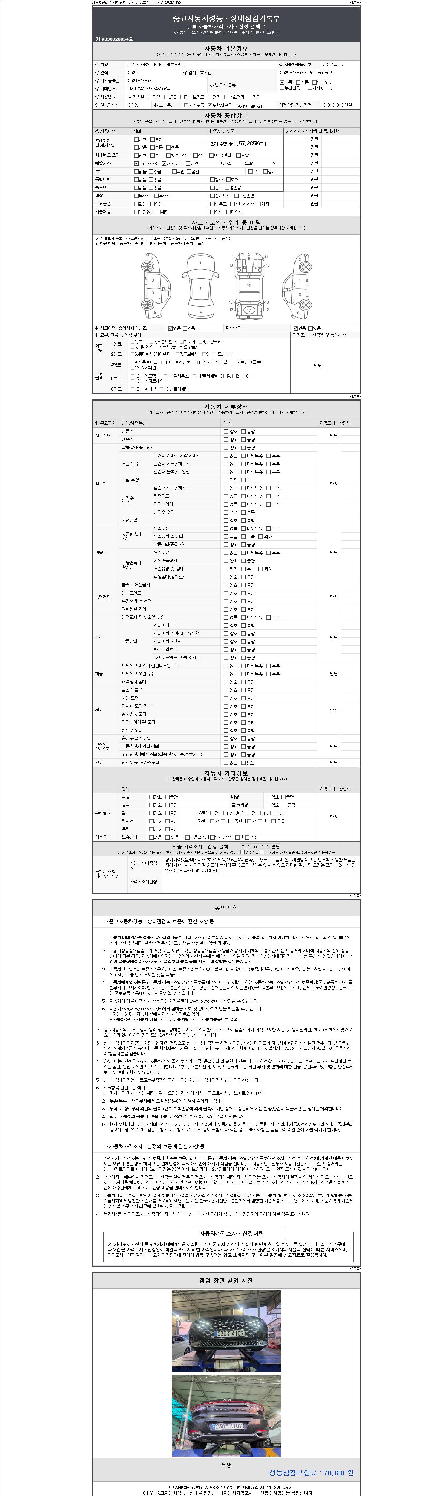 - 2. 차량 등록증이나 성능점검지 등을 상담자에게 요청및 확인하시고 사전에 미리 점검 하시기를 권유드립니다.