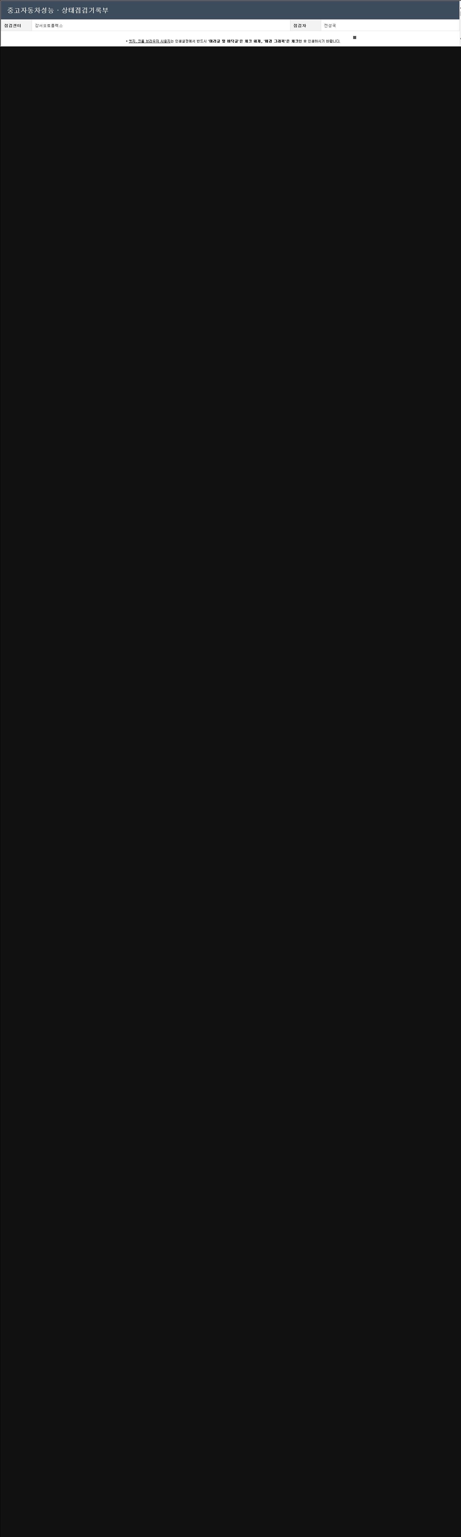 자동차관리법 시행규칙 제120조의 규정에 따라 별지 제 82호서식 《중고자동차 성능, 상태점검 기록부》를 발행한 성능, 상태점검자 및 매매자는 아래의 보증기간 또는 보증거리 이내의 중고자동차, 성능점검 기록부에 기재된 내용과 자동차의 실제 성능, 상태가 다른 경우 계약 또는 관계법령에 따라 매수인에 대하여 책임을 집니다.