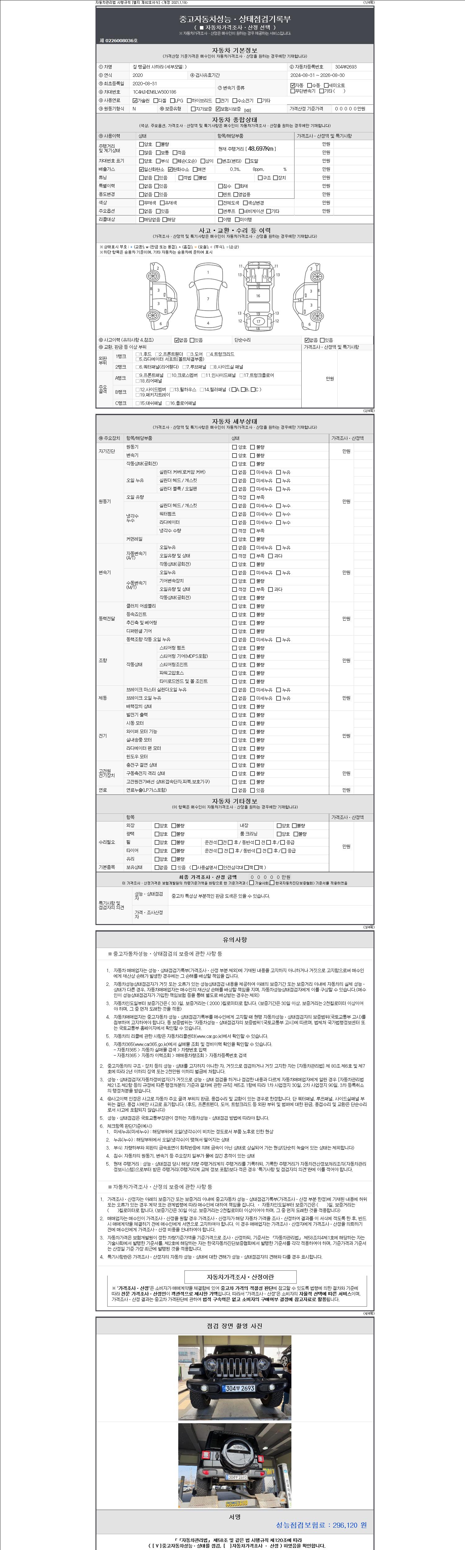 | 주행거리 | 48,697 km | 차량번호 | 304부2693 | 사고유무 | 성능기록부 참조 | 제시번호 | 제 2147483647 호 |